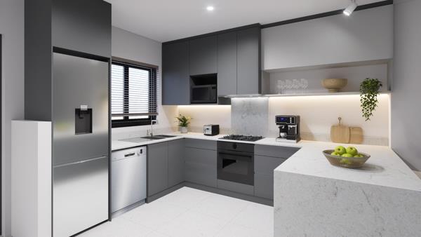 The Fleur Type is a versatile double-storey home with 3 bedrooms, 2 bathrooms and a double garage. Open-plan kitchen, dining, and living areas create a seamless daily flow, while the dedicated braai room allows effortless entertaining year-round.