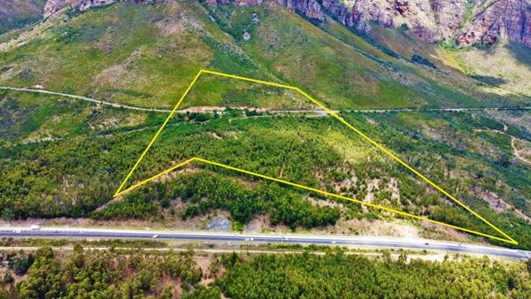 12 HA land for sale on the slopes of the Drakenstein mountains, overlooking Du Toits Kloof pass.