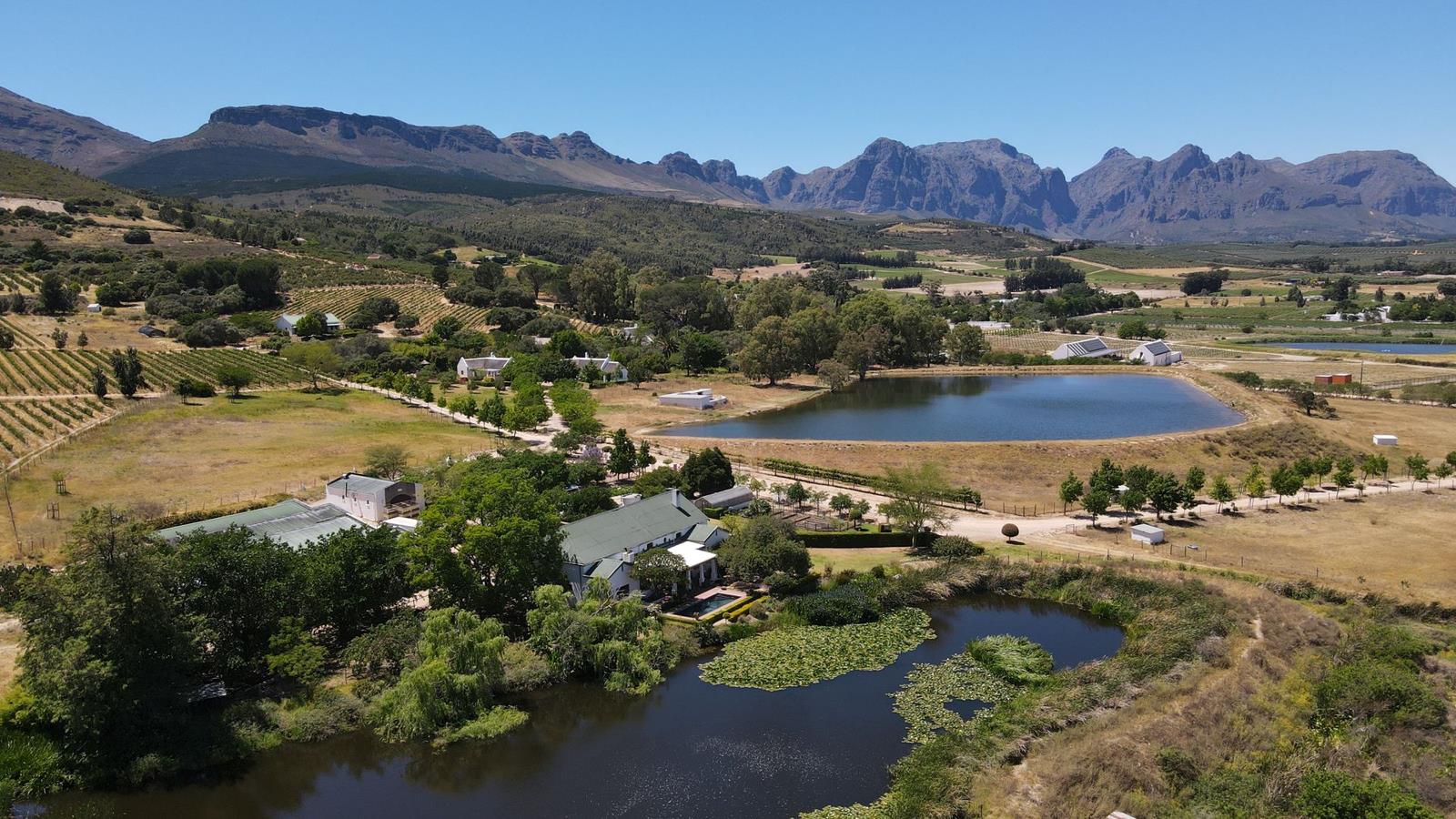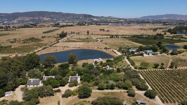 Nestled on the slopes of the Hawekwa Mountains between Paarl and Wellington with beautiful views of the mountains and valley below, this farm is located minutes away from top schools, shops and other amenities and a mere 68 km from Cape Town International Airport. The farm offers a diverse income from 7ha of pristine vineyards, a fully operational wine cellar and seven self-catering cottages.