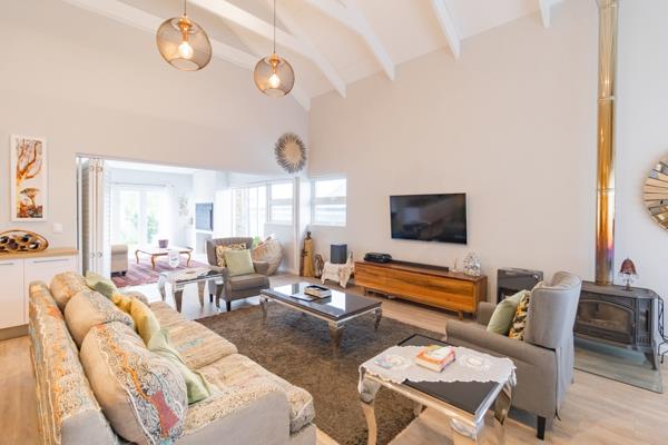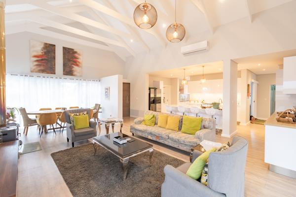 The property offers double glazing and vinyl flooring for comfort and tranquility, as well as a closed combustion fireplace for cost effective heating, 4 airconditioning units, and an indoor braai room with stacking doors for those amazing summer days. The designer kitchen has a classy SMEG gas/electric oven, gloss white cupboards and Ceasar stone tops, all adding to the feeling of class and spaciousness. A competent 5kW inverter, coupled to 16 solar panels and 4 batteries not only gives you peace of mind, but also virtually covers your full eletrical consumption costs in Summer.