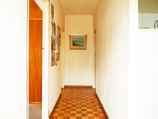Flooring: The inviting hallway boasts beautiful, classic wooden block flooring, adding a touch of character and warmth.