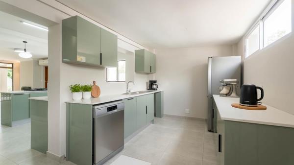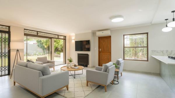 Step into this newly renovated, light and bright 3-bedroom, 2.5-bathroom home in the sought-after Groenvlei neighborhood. Modern finishes, a seamless open-plan layout, and excellent indooroutdoor flow make this an ideal family home or a turnkey Airbnb investment. Living, Dining And Outdoor EntertainingThe spacious open-plan living and dining area is flooded with natural light and features a cozy fireplace and air conditioner for year-round comfort. Large doors open onto a generous undercover patio with built-in braai, creating the perfect space for entertaining family and friends. The patio overlooks a sparkling blue pool and a neatly landscaped, lawned garden with automated irrigation ideal for relaxed summer days and low-maintenance living. A convenient guest bathroom downstairs offers a toilet and basin. Modern Kitchen And Separate Scullery