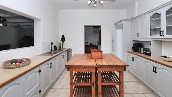 Inside, the home features 5 generously sized bedrooms, two en-suite bathrooms, and an additional full bathroom. Two bedrooms - including the main suite - open directly onto the pool area, creating an easy indoor-outdoor flow. A guest bedroom with its own en-suite also enjoys direct access to the pool. The kitchen is spacious with ample cupboard space and leads into an entertainmentbraai room, ideal for hosting family and friends. The living and dining area boasts beautiful wooden floors, abundant natural light, and a cosy fireplace, making it a warm and inviting space. Step outside to a sparkling swimming pool, perfect for summer living in Paarl. The property is fully walled for privacy and security, and includes a 1.5 garage for extra storage or workspace. This is a rare opportunity to own a large, well-located home with excellent potential and fantastic living spaces - both indoors and outdoors.