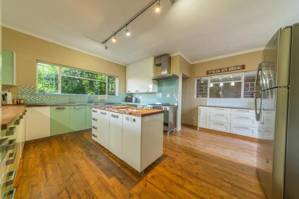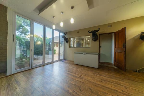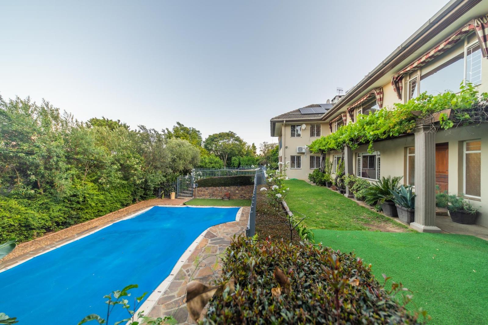 Step outside to embrace a lifestyle of leisure and entertainment. The meticulously landscaped garden provides a serene backdrop for the sparkling swimming pool, inviting relaxation on warm South African days. An integrated built-in braai and a dedicated braai room promise memorable outdoor dining experiences. The property also features a private balcony, perfect for enjoying the tranquil surroundings. With two garages and three additional parking spaces, convenience is paramount, and pets are welcome to enjoy this expansive estate.