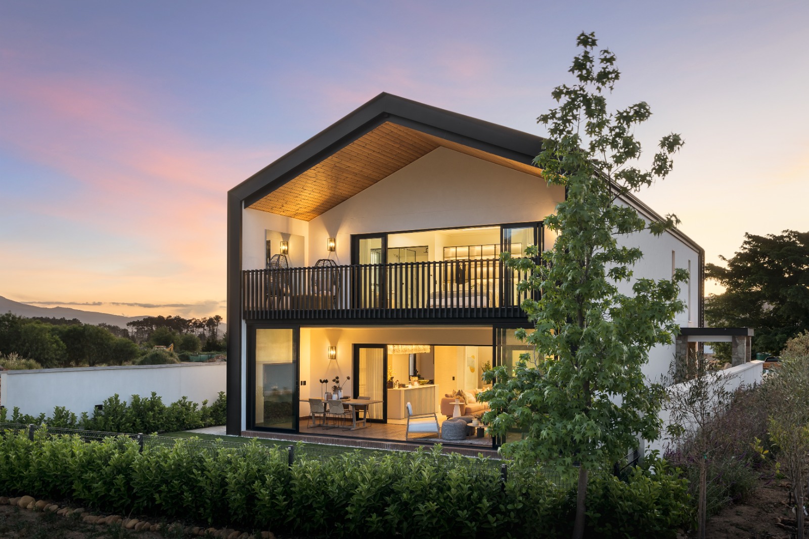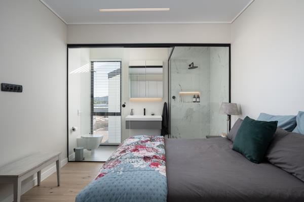 These three-bedroom, three-and-a-half-bathroom double-storey homes offer generous living space, a guest bathroom, a garage and a braai room on the ground floor, with a study and the bedrooms each with an ensuite on the first floor.