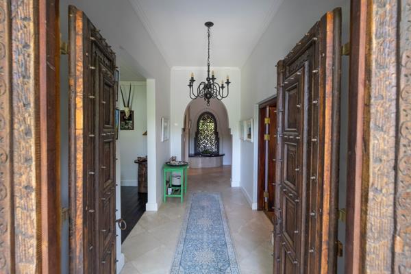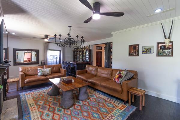 The main bedroom is a private retreat, boasting a walk-in closet and a beautifully decorated en-suite bathroom with underfloor heating and exquisite finishes. 4 Additional bedrooms provide comfort and style, each fitted with air conditioning and ceiling fans. With 2 of the rooms enjoying their own en-suite bathrooms, while the remaining 2 share a well-appointed 4th bathroom. Ample built-in cupboards, striking wall features, and a guest toilet enhance the homes refined character. A two-bedroom cottage, used as staff quarters, sits separately on the property, featuring an open-plan kitchen and lounge that flows onto a private stoep and a small, tranquil garden. This property offers a double garage and additional parking for at least 6 more vehicles.