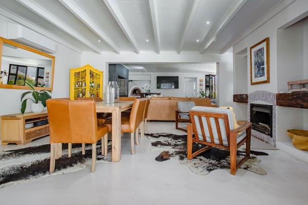 The living area extends into a braai room, complete with a pizza oven. Offering three well-appointed bedrooms, this home includes two en-suite bathrooms. Upstairs, a quiet landing area provides the ideal space for a home office or study nook. Outside you will find a pool surrounded by a relaxed outdoor entertainment area with a built-in braai. A large double garage offers convenience and secure parking. An additional outside room with its own en-suite bathroom provides excellent versatility for guests or staff. This home is a rare blend modern finishes and generous living areas into a property that stands out from the rest.