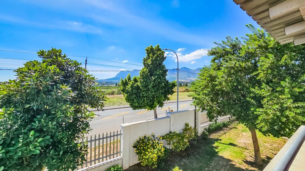 Spacious apartment in the sought after Amberg Estate, Paarl East. Open plan kitchen, dining and TV/Living area with sliding doors onto a large undercover braai balcony. Beautiful country views of farmland and Drakenstein Mountains.