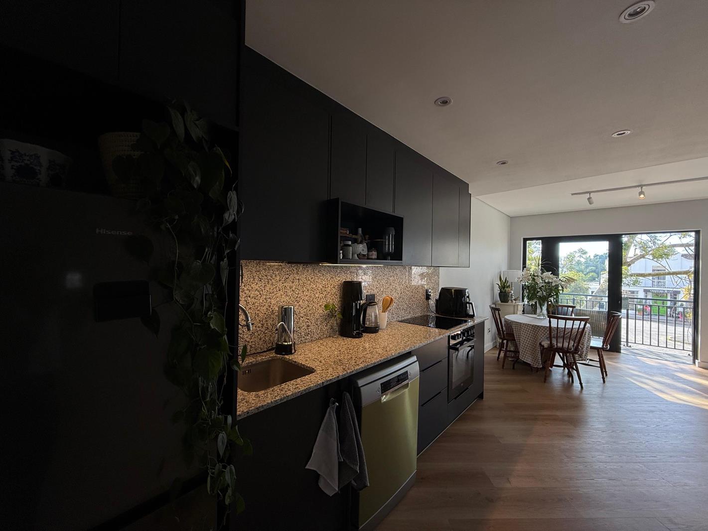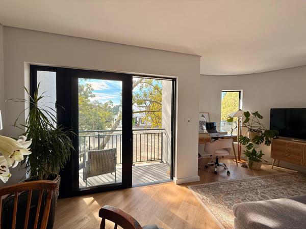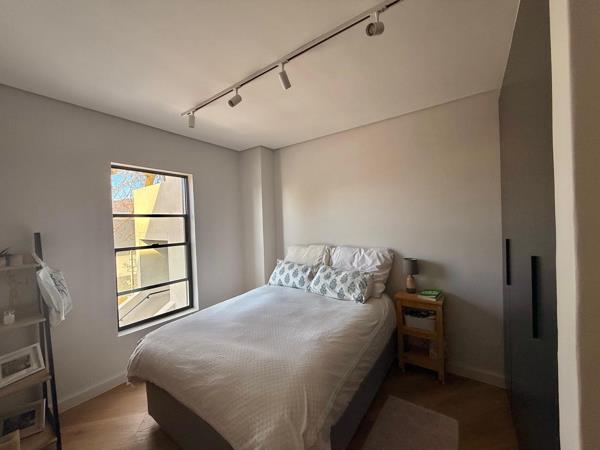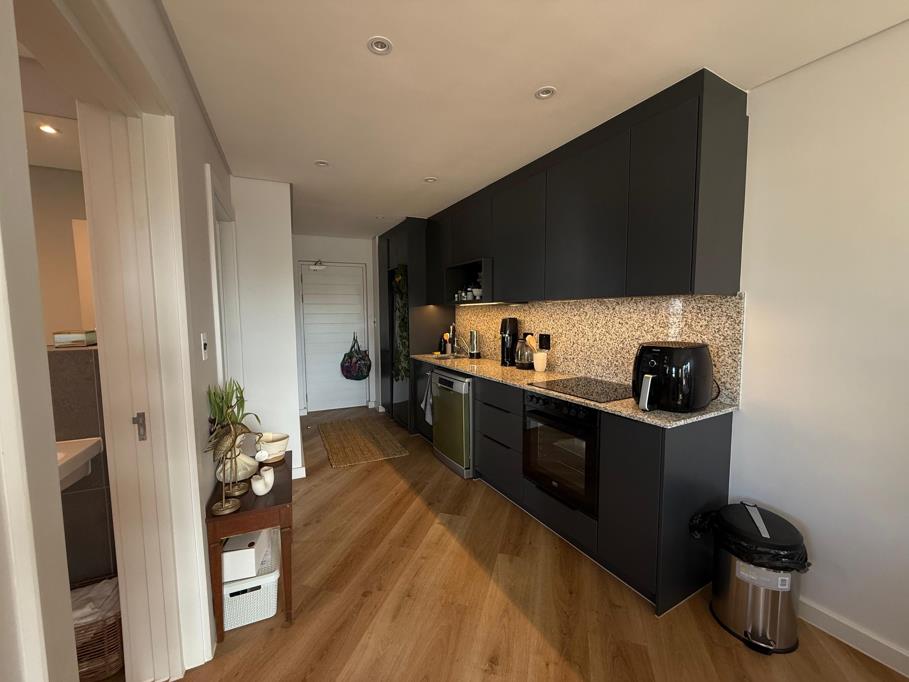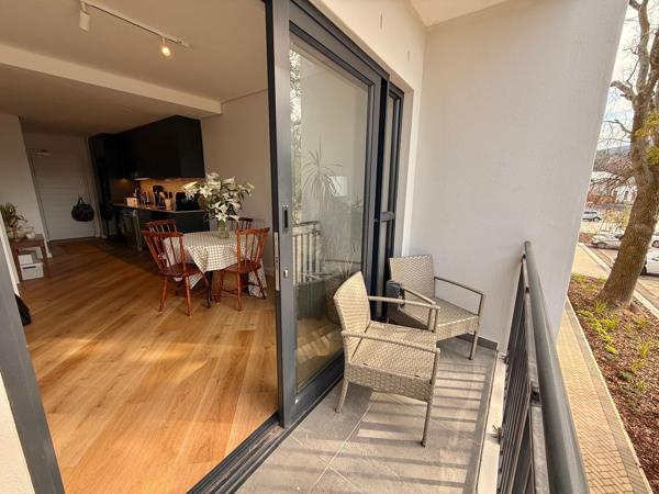 The spacious living room opens to a private balcony, offering breathtaking views of the Boland mountains. The apartment is designed with contemporary finishes and features throughout, making it ideal for modern living.