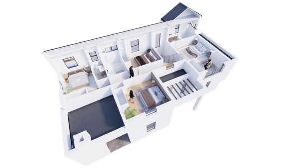 4 Bedrooms, 3.5 Bathroom home with a double garage. All 4 bedrooms are on the first floor, with the bathrooms, 2 en-suite and 2 sharing. The ground floor features an open-plan living, dining and lounge area, with an outdoor patio undercover with a built-in braai. There is also a guest bathroom on the ground floor, a double garage and off-street parking in the driveway.