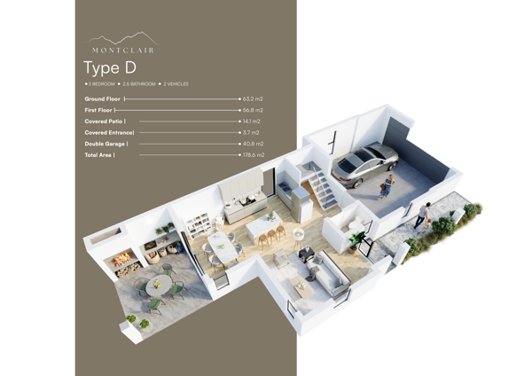 This type-E, 3-bedroom, 2.5 bathroom family home features a spacious erf of 288sqm and a living area of 182sqm.