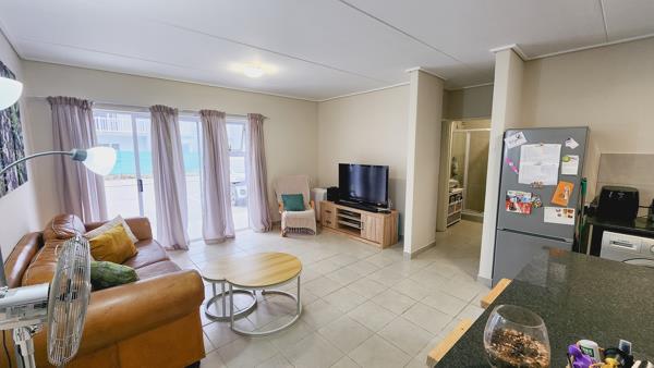 Living space & kitchen The apartment has an open-plan lounge and kitchen, which makes efficient use of space and gives a bright, airy feel. The lounge connects directly to a private stoep, via sliding doors a nice spot for morning coffee or small gatherings.