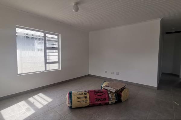 4 Bedrooms with built-in cupboards, 1 en-suite bathroom with shower, basin and toilet as well as 1 common bathroom with bath, basin and toilet will keep the entire family happy. Open plan living area and kitchen with sink unit, hob and under counter oven. Washing machine connection in the kitchen for convenience. There are burglar bars on all opening windows for added security and curtain rails on all windows are included.