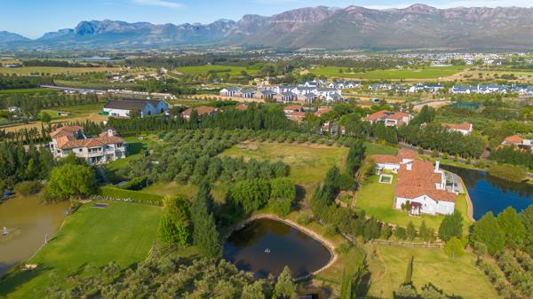Located in the picturesque Drakenstein Valley, this estate offers breathtaking panoramic views of the Simonsberg and Du Toitskloof mountains. Surrounded by olive groves and vineyards, it is conveniently close to Franschhoek and Babylonstoren Wine Estate, as well as top private and public schools.