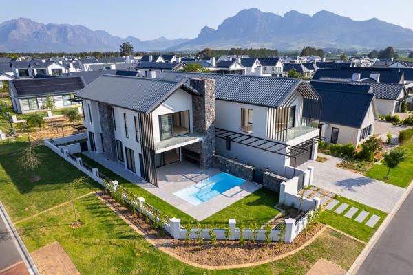 Discover the perfect blend of refined living and natural beauty in this family home, positioned in the sought-after La Vue neighbourhood of Val de Vie Estate. With panoramic views of the majestic Winelands mountains and luxurious finishes throughout, this home is designed for effortless living and entertaining.