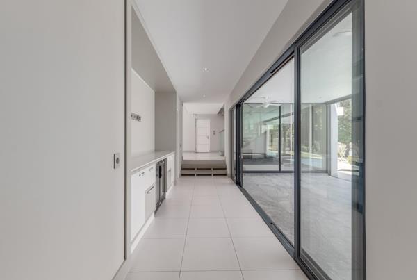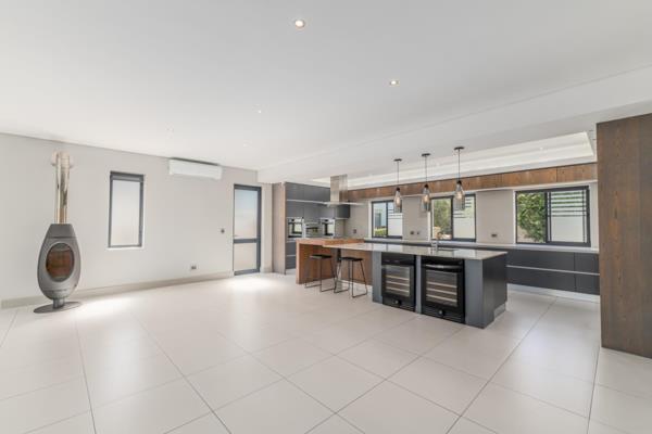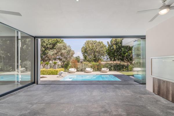 A sun-drenched braai room beckons, leading you to a private pool and outdoor entertainment areas. Open up the large glass stacker doors to seamlessly connect the braai room with the outside area. Whether you prefer gas or wood burning, the built in braai is versatile to accommodate your braai needs.