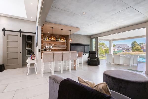 This elegant North facing lake home offers 4 bedrooms and 4 bathrooms. The spacious double volume living area includes wonderful entertainment spaces with a bar and dual gas and wood burning indoor braai. A covered patio and lakeside deck with boma braai add to the entertainer appeal. The home also offers an exquisite kitchen and scullery, study, unique loft room in the 4th bedroom and 3 garages.