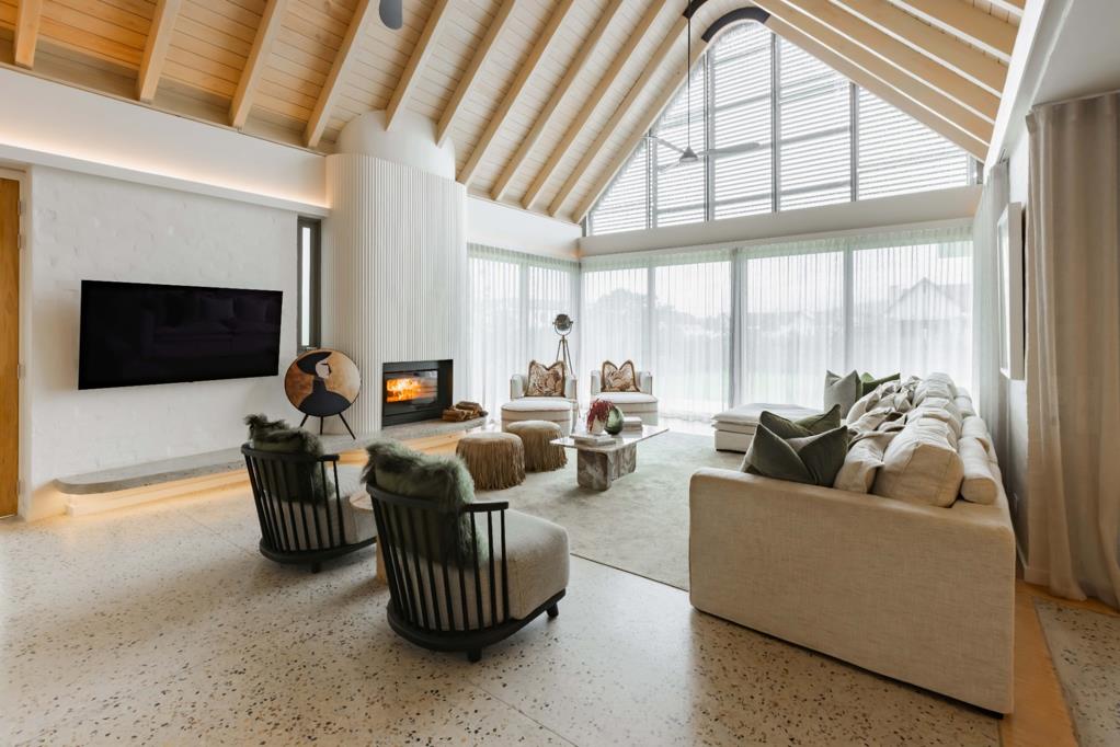 The property has a visually unique appeal that blends modern features with the comfort of a more traditional feel.