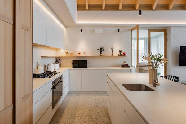 The functional and practical layout is perfect for family living and entertaining with the large entertainment areas, open plan to the kitchen, flowing out to the covered patio with its built in braai, a large heated pool and a sun filled North facing garden.