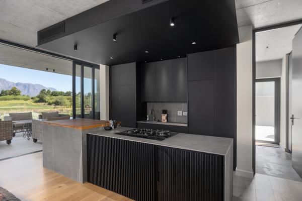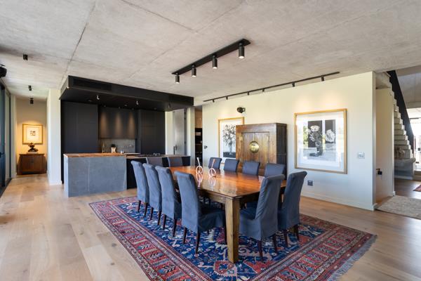 A contemporary concept home with high end finishes flows flawlessly from the double volume entrance hall through to the open plan lounge with wood burning fireplace, diningroom and gourmet designed kitchen with a seperate scullery, as well as a work station and guest toilet.