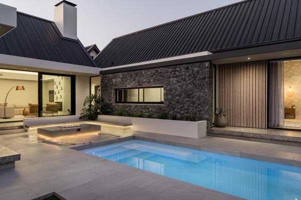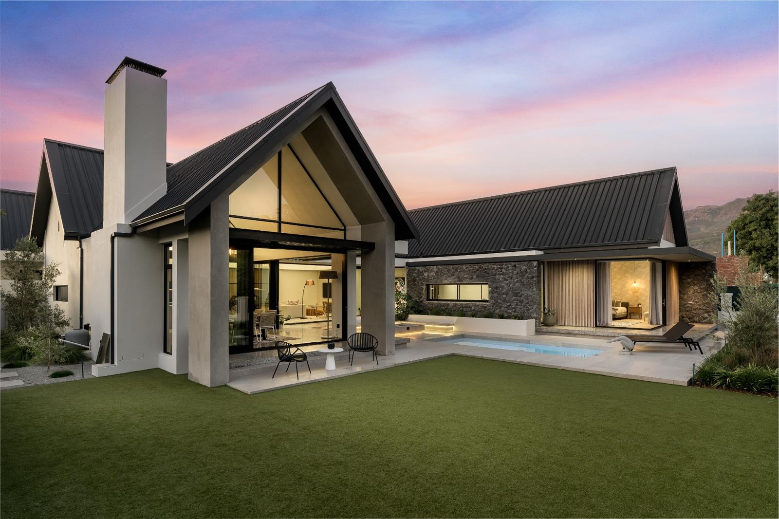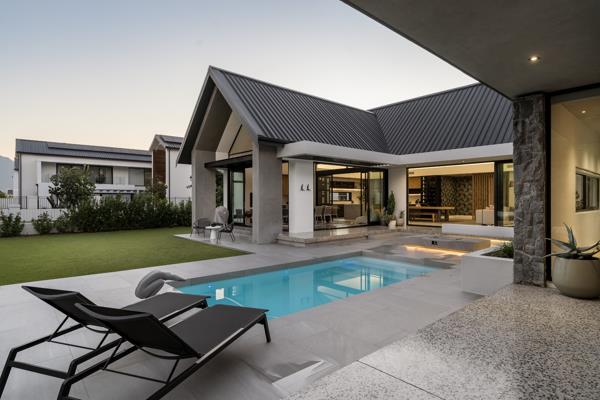Discover unparalleled elegance in this newly built single-level home designed by architect Louis Phillips, nestled within the exclusive Pearl Valley Golf Estate. Positioned for privacy, it overlooks a lush greenbelt and offers panoramic mountain views, creating a serene and picturesque setting.