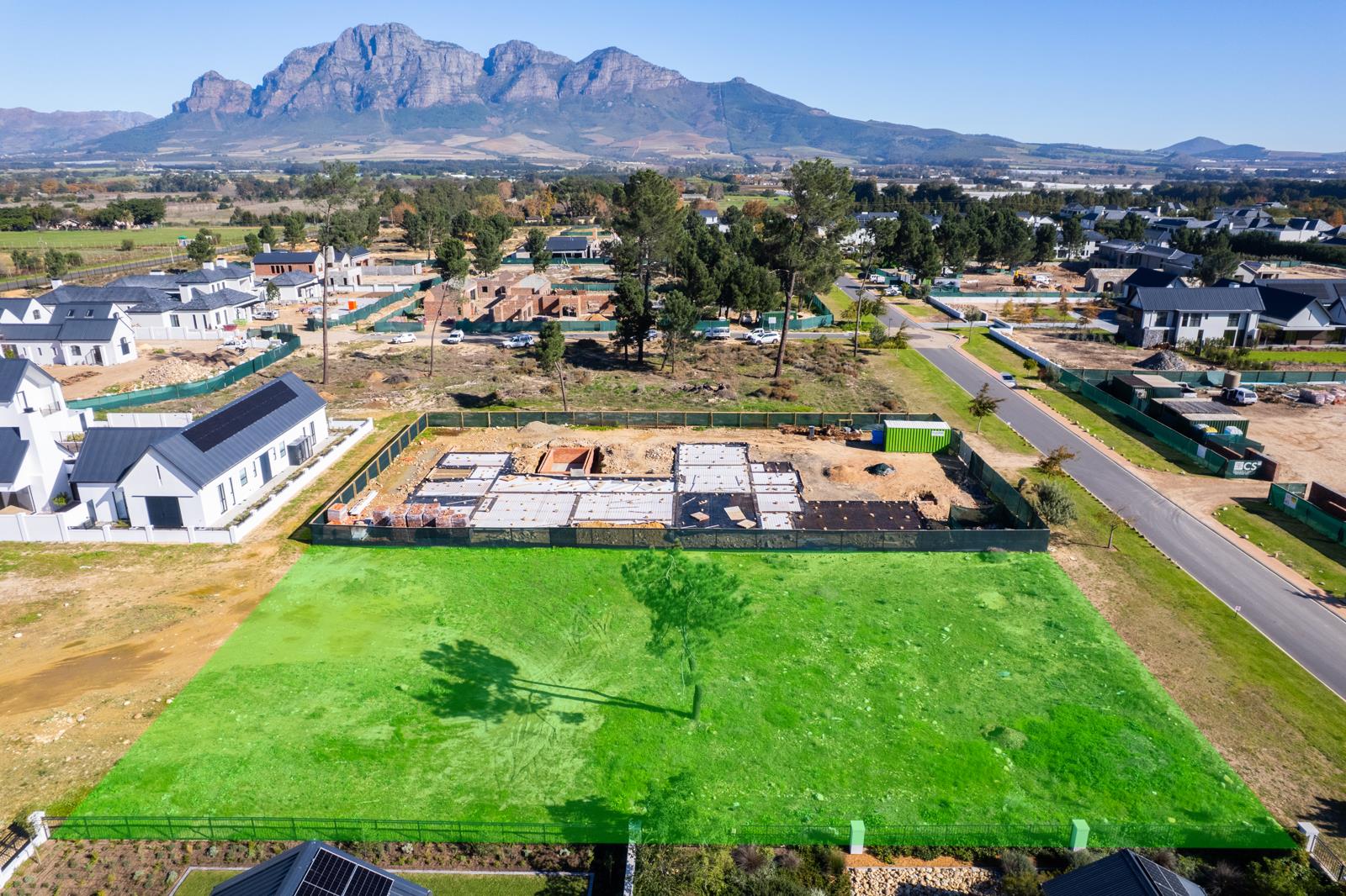 Nestled in a peaceful, country-inspired enclave, the property boasts breathtaking views of the Simonsberg Mountains, creating a serene and picturesque backdrop.