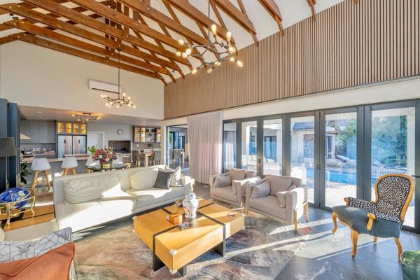 Upon entering this home you are greeted with style and nature, light and luxury flooding the open plan entrance leading straight into the open plan dining room and kitchen with built in braai or fireplace, truly an entertainers dream.