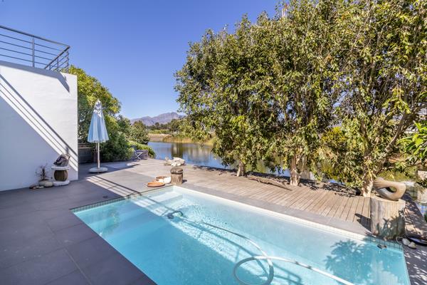 The seamless indoor-outdoor connection from the covered patio and braai room onto the wooden deck and pool that kisses the lakes edge makes every day feel like a getaway.