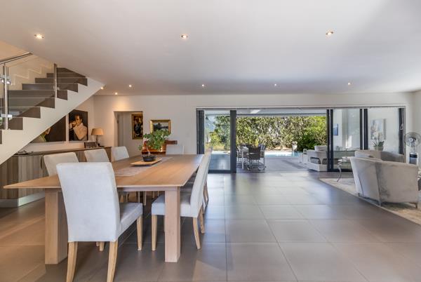 Oversized sliding doors open onto a sun drenched pool deck, ideal for entertaining and unwinding.