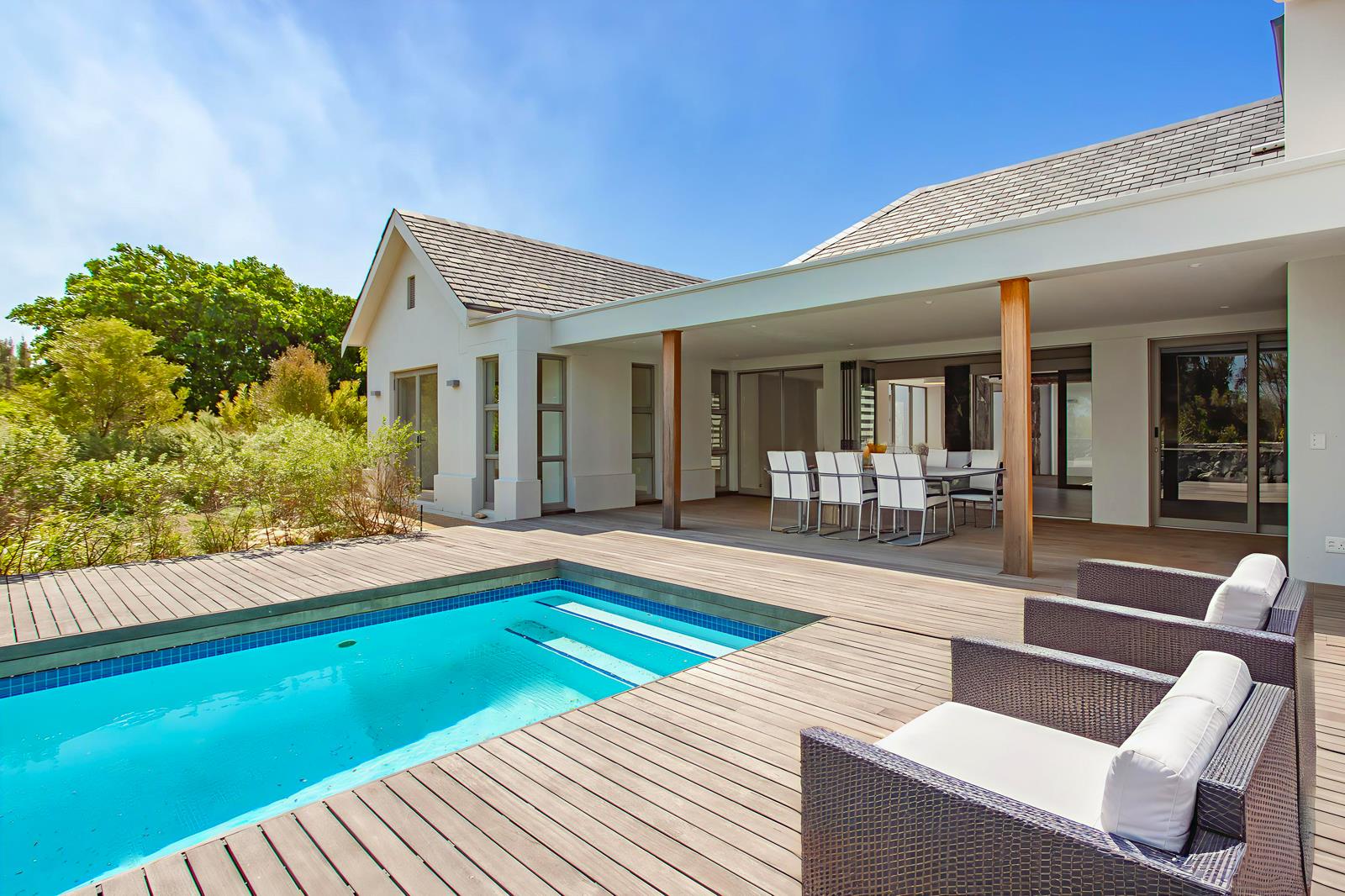 The lounge has a built in bar and closed combustion log burning fireplace. Both the dining area and lounge lead out through sliding and large stack away doors onto the wind protected sun-soaked pool deck with sparkling pool.