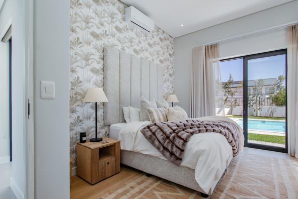 The modern kitchen is a chefs dream, featuring high-end built-in appliances, a separate scullery for added convenience. The indoor braai/dining room, complemented by a closed combustion fireplace, offers a cozy retreat for those cooler evenings.