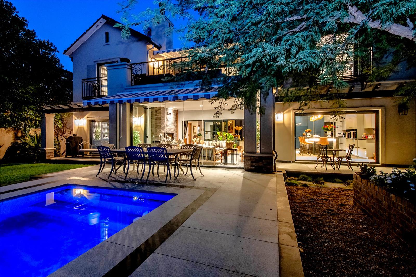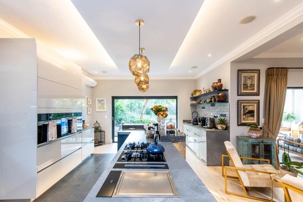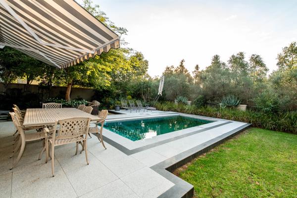 Designed with a focus on quality time with loved ones, the sleek and modern kitchen is a culinary haven, featuring integrated appliances, a separate scullery and laundry area, and frameless stacking doors that seamlessly blend indoor and outdoor living. Step outside to the expansive garden, graced by mature trees, or retreat to the enclosed patio with a fireplace, perfect for intimate gatherings or al fresco dining by the pool.