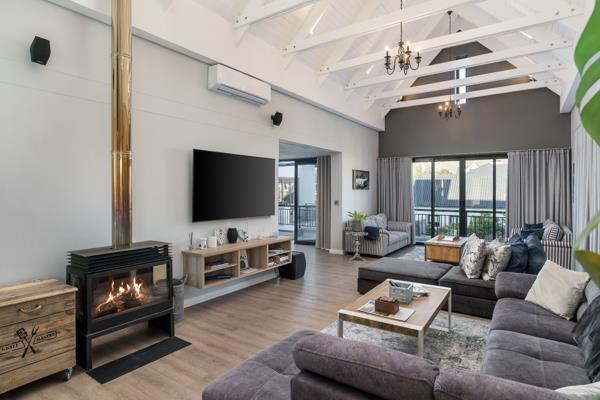 As you ascend the elegant glass balustrade staircase to the first floor, youll discover an open-plan living space that radiates warmth and style. A chic study area and two inviting lounges beckon you to relax, while the wood-burning fireplace adds an old-world charm. Wine enthusiasts will be delighted by the impressive wine cellar, and the trendy kitchen, featuring a built-in braai, flows effortlessly into a separate dining roomideal for hosting summer feasts and gatherings with friends and family.