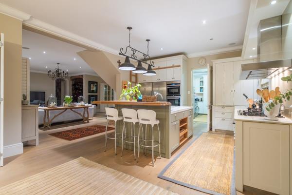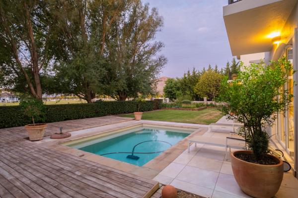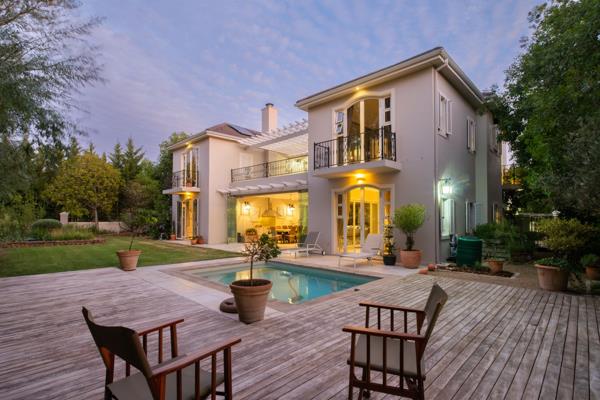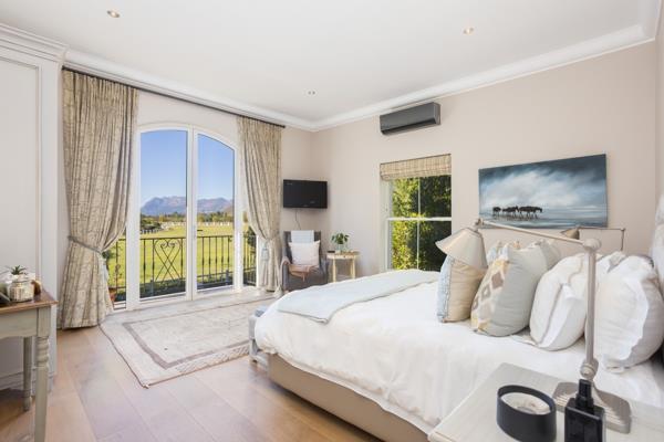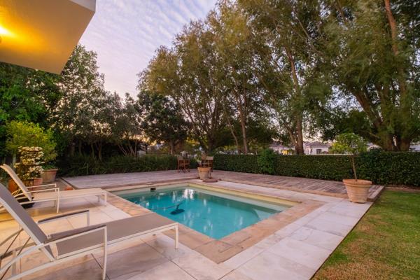 Nestled alongside picturesque tree-lined paddocks, this north-facing graceful French inspired home exudes timeless elegance and charm. A grand entrance, complete with a tranquil fountain and impressive double doors, welcomes you with captivating views of the majestic Simonsberg mountains.