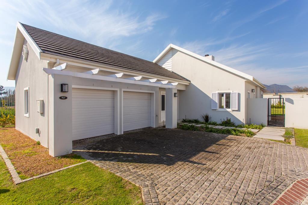 Charming Three Bedrooms House in Val de Vie Estate. Tucked away in the sought-after enclave of The Vines, this beautifully appointed three-bedroom home offers privacy, comfort, and stylish living. The open-plan layout flows seamlessly from the granite and wood-finished kitchen equipped with a gas stove complete with a small scullery into the spacious living and dining areas, ideal for both relaxed family living and entertaining. An inviting indoor braai area adds to the charm, making year-round entertaining a breeze. The main bedroom features built-in cupboards and a full en suite bathroom, while the two additional bedrooms share a well-appointed bathroom. Additional features include a double garage and a low-maintenance garden, all within a peaceful, secure setting.