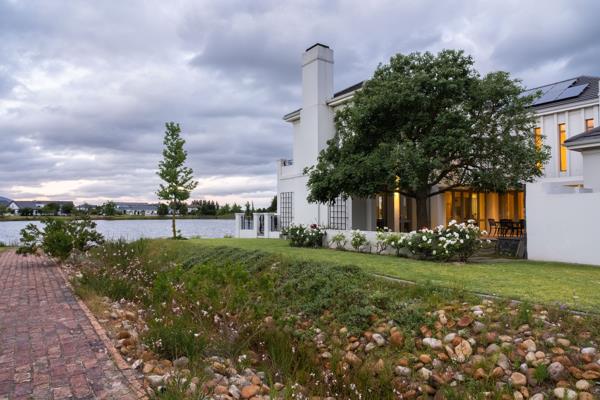 -bedroom home offers breathtaking views of the water and iconic Paarl Rock. With only one neighbouring property and bordering a tranquil greenbelt, privacy and peace are paramount.
