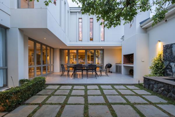 The heart of the home comprises multiple flowing living spaces, including a cosy lounge with a fireplace, a stylish entertainment area with a built-in braai, a generous dining space, and a private studyall thoughtfully positioned to take full advantage of the panoramic lake views. A charming, shaded courtyard with a majestic tree offers a peaceful retreat and direct access to the greenbelt and lakeside walking paths.
