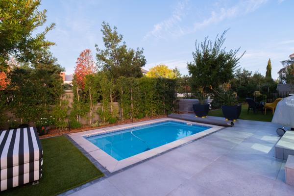 Surrounded by a lush, meticulously landscaped garden, the property features an inviting swimming pool and an expansive patioperfect for relaxed outdoor living or refined entertaining.
