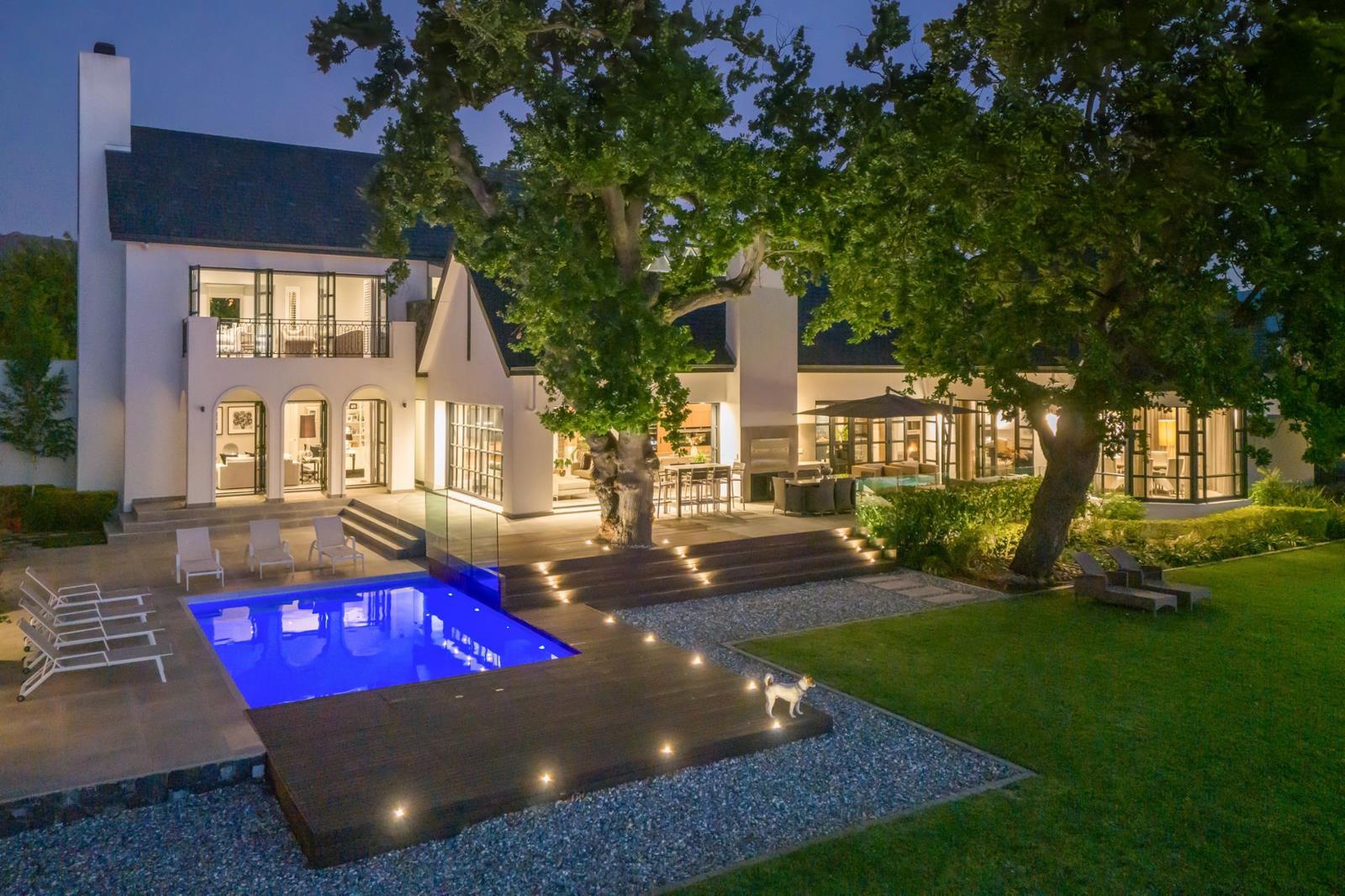 The propertys practical and sustainable features include a separate laundry and scullery, three garages, staff quarters, a garden shed, automated irrigation, as well as a solar and inverter system.