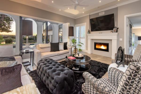 This expansive home is a triumph in design, brought to life by Norval Louw from Louw & Louw Architects. The impressive double volume entrance foyer with an engineered wood staircase and frameless glass balustrade leads through to the living areas and out to two wooden decks, one with a gas braai and the other with a swimming pool.
