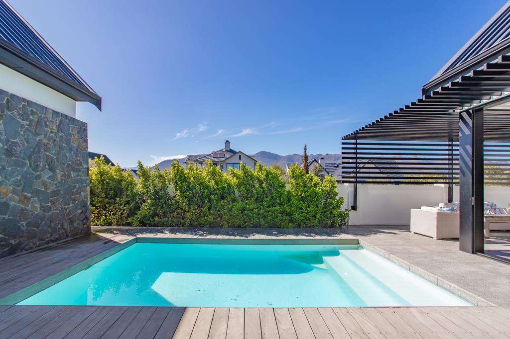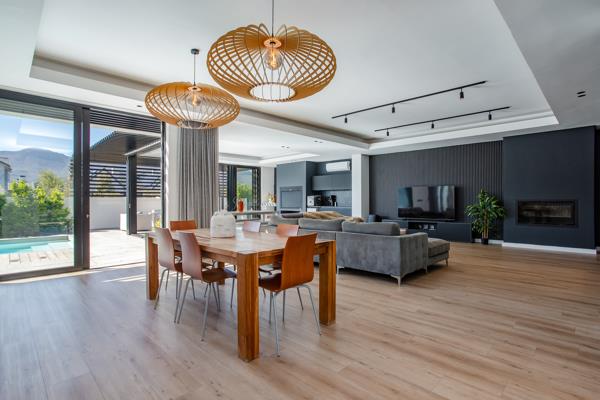 Nestled within the exclusive Val de Vie Estate and located in a quiet cul-de-sac this sleek, modern 5 bedroom home with opulent finishes offers elegance and opulent finishes beautifully designed by Architect Louis Phillips.