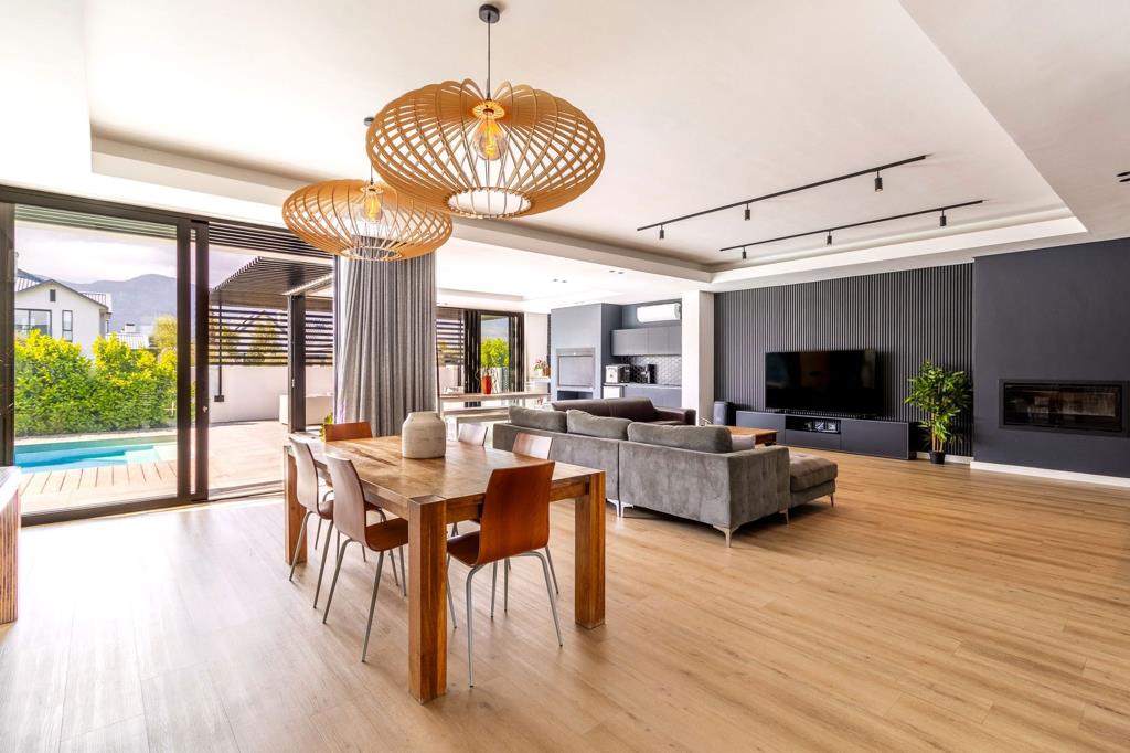 Exclusive Contemporary Home with International Appeal Val de Vie Estate, La Vue. Designed by acclaimed architect Louis Phillips, this modern 5-bedroom residence in a peaceful cul-de-sac of the La Vue neighbourhood offers a rare blend of sophistication, functionality and breathtaking mountain views.