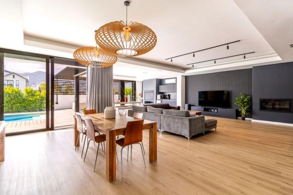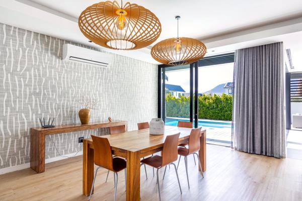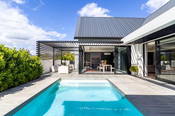 The homes open-plan design is crafted for seamless living: a sleek kitchen and dining area flow into a formal lounge and a stylish indoor-outdoor entertainment space, complete with covered braai area, sun-soaked deck and private swimming pool.