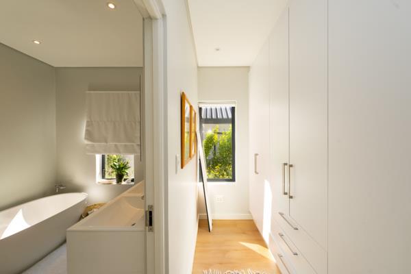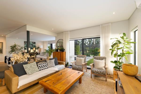 An indoor braai (with state of the art BBQ which includes wood and gas options) and entertainment area flow via glass sliding doors onto a manicured garden and swimming pool.