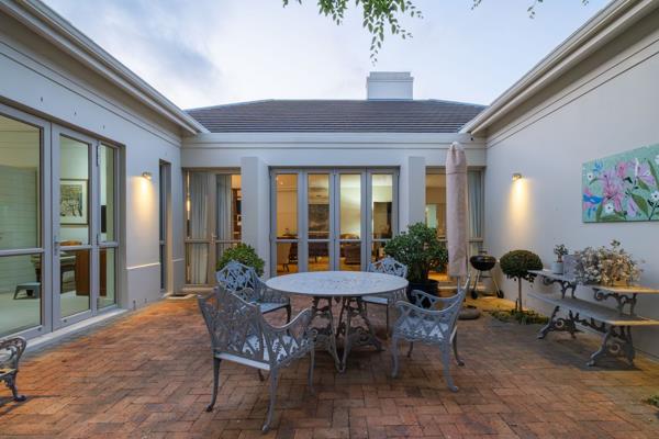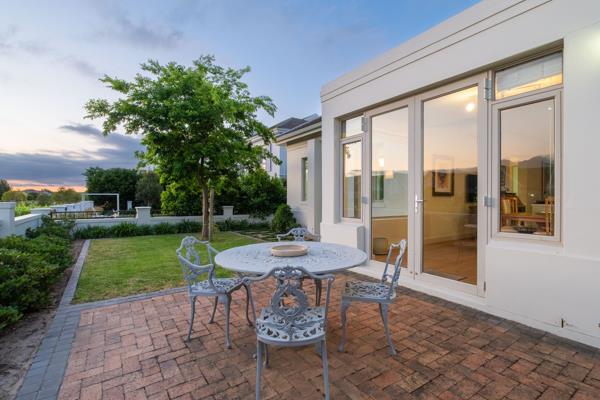 EXCLUSIVE SOLE MANDATE. Perfectly positioned on the sought-after side of Val de Vie Estate, this elegant single-storey home captures the essence of refined country living. Overlooking a tranquil park dotted with olive trees to the north and bordered by vineyards to the south, the property enjoys breathtaking views of the Simonsberg mountains.