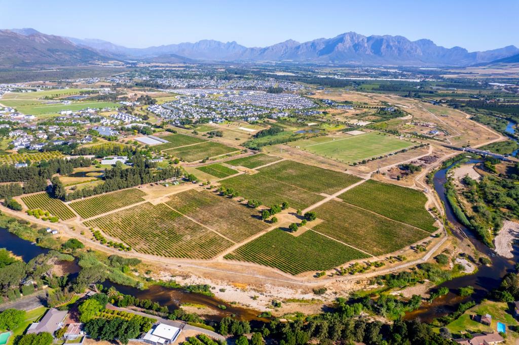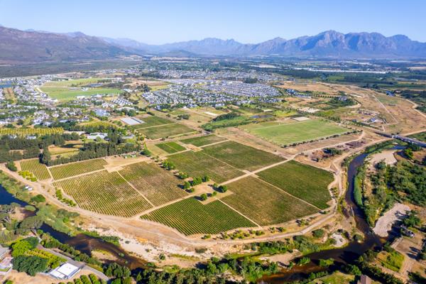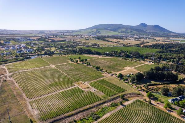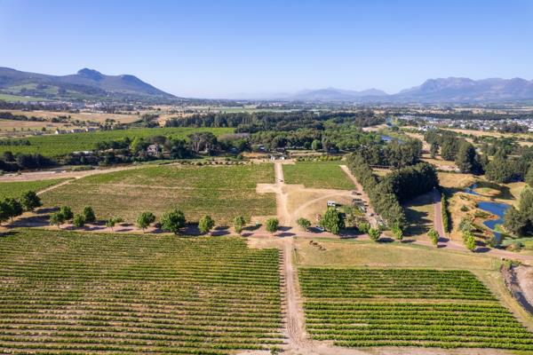 This 27-hectare property offers breathtaking panoramic views of Simonsberg, Paarl Rock, and the Franschhoek mountains.