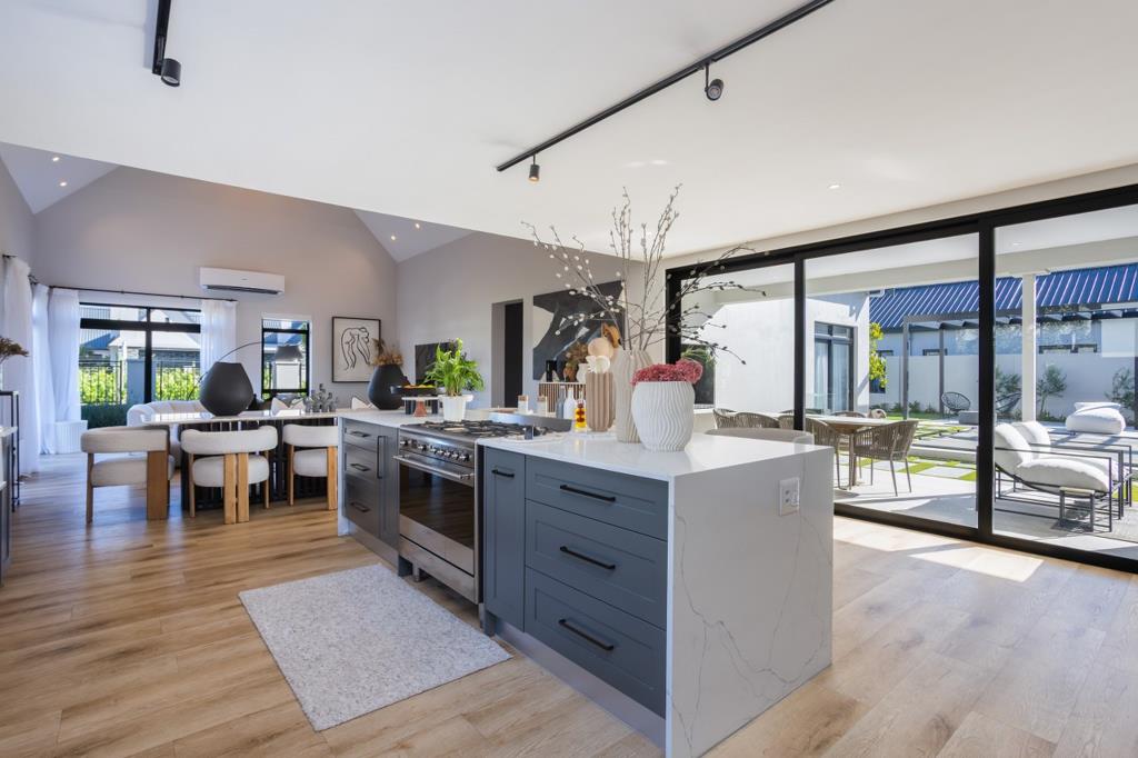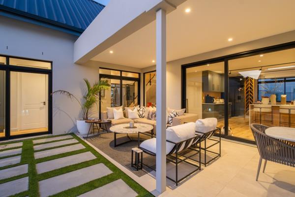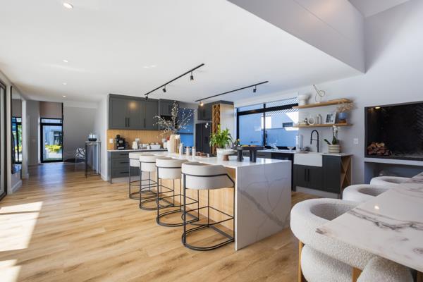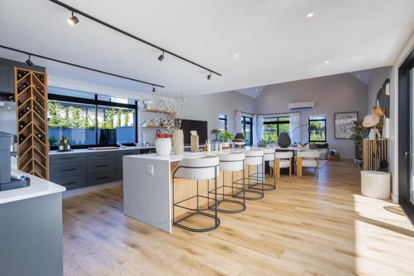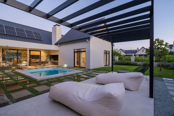 EXCLUSIVE JOINT MANDATE. Experience refined single-storey living in a quiet, sought-after street, beautifully positioned along the vineyard edge. Designed for effortless comfort and modern elegance, this home centres around a tranquil west-facing courtyard with a sparkling pool, creating a serene, sun-drenched leisure space.