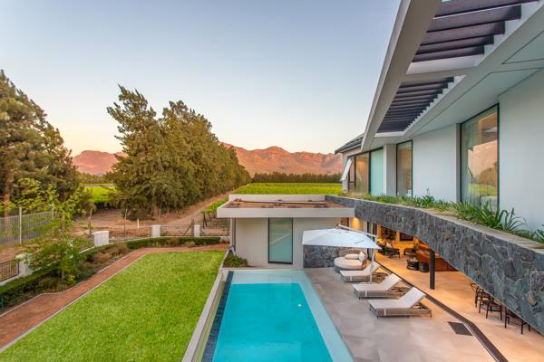 Central to the design philosophy is the uninterrupted flow established by the open-plan configuration. Double-glazed panels stretching from floor to ceiling serve as vast, transparent boundaries, allowing the sophisticated internal spaces to merge effortlessly with the meticulously maintained gardens and the designer swimming pool. The homes strategic siting was essential in maximising both natural warmth and light, ensuring every area feels elevated, luminous, and completely secluded.