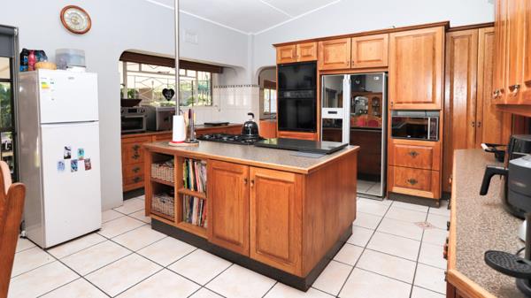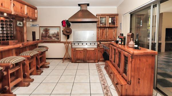 The heart of the home is the open-plan kitchen, featuring a spacious central island and a separate scullery. It flows seamlessly into the dining area and under-roof braai room, creating the perfect setting for family meals, weekend gatherings, and year-round entertaining.