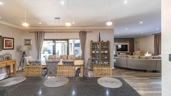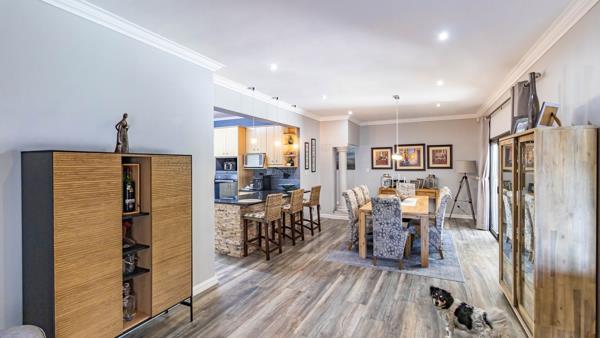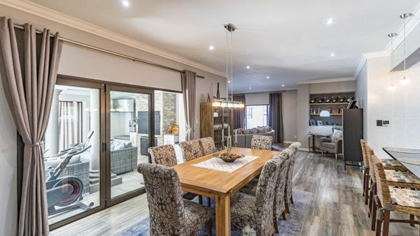 Entertain with ease on the covered braai patio overlooking a sparkling swimming pool, creating the perfect setting for weekend gatherings and relaxed afternoons.